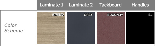 Please consider all factors influencing color perception when choosing the finishes. Natural or artificial light, time of day, and surrounding hues in your office environment, all can influence one's visual perception of color.